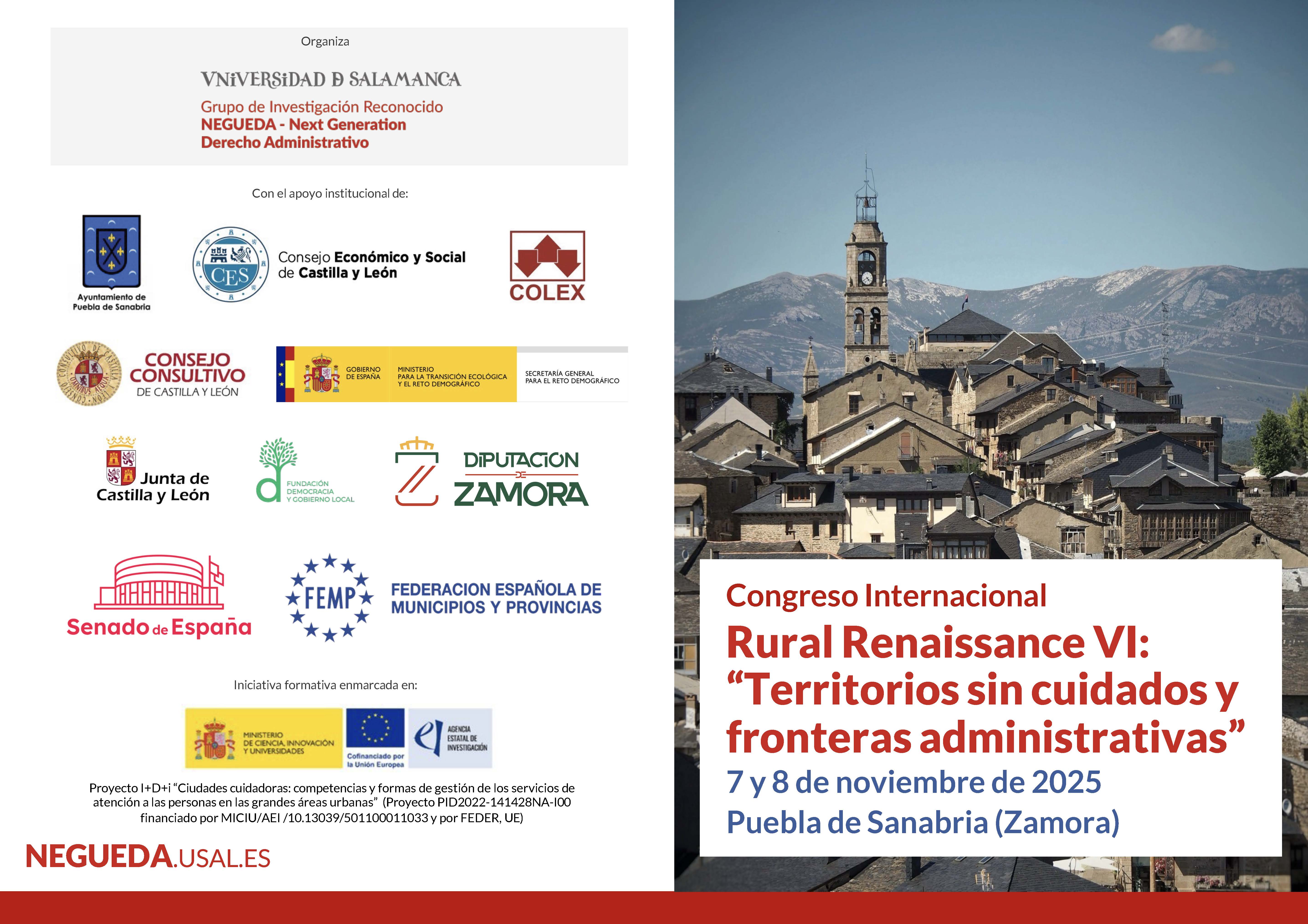 Con este propósito, el Área de Derecho Administrativo de la Universidad de Salamanca organiza los próximos días 7 y 8 de noviembre de 2025 en Puebla de Sanabria (Zamora) un nuevo encuentro bajo la marca «Rural Renaissance».
